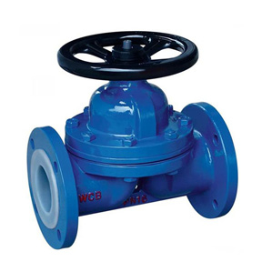 隔膜閥的閥體內(nèi)腔介質(zhì)過流部分全部襯膠(或襯氟),閥蓋內(nèi)裝有撓性膜片,執(zhí)行機(jī)構(gòu)通過膜片的上下位移與閥座形成閥門的啟閉。隔膜閥的優(yōu)點(diǎn)是,保證介質(zhì)與襯膠、膜片以外其它零件的完全隔離,這不僅保證了工作介質(zhì)的純凈,同時(shí)也防止介質(zhì)對(duì)其它零件造成侵蝕。此外,閥桿處不需要采用其它任何形式的單獨(dú)密封。由于工作介質(zhì)接觸的僅僅是隔膜和襯膠閥體,二者都可以采用不同的制造材料,因此,本閥門可以理想的控制多種不同的工作介質(zhì),尤其適合帶有化學(xué)腐蝕性或懸浮顆粒物的介質(zhì)。