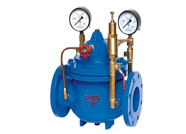 200X減壓穩(wěn)壓閥由主閥、導(dǎo)閥、針閥、球閥、微型過濾器和壓力表組成水力控制接管系統(tǒng)。使用時(shí),當(dāng)調(diào)定出口壓力后,能自動(dòng)保持穩(wěn)定出口壓力。